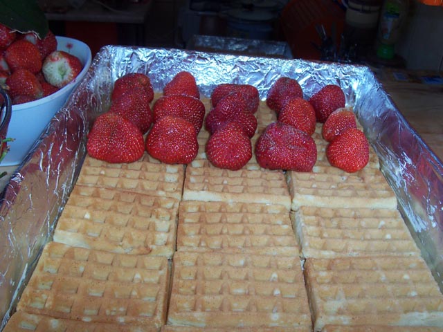 Placek z goframi i owocami