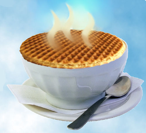 Filiżankę gorącej kawy lub herbaty nakrywamy listkiem stroopwafla – po zmiękczeniu możemy się już delektować wyrafinowanym smakiem… Smacznego.